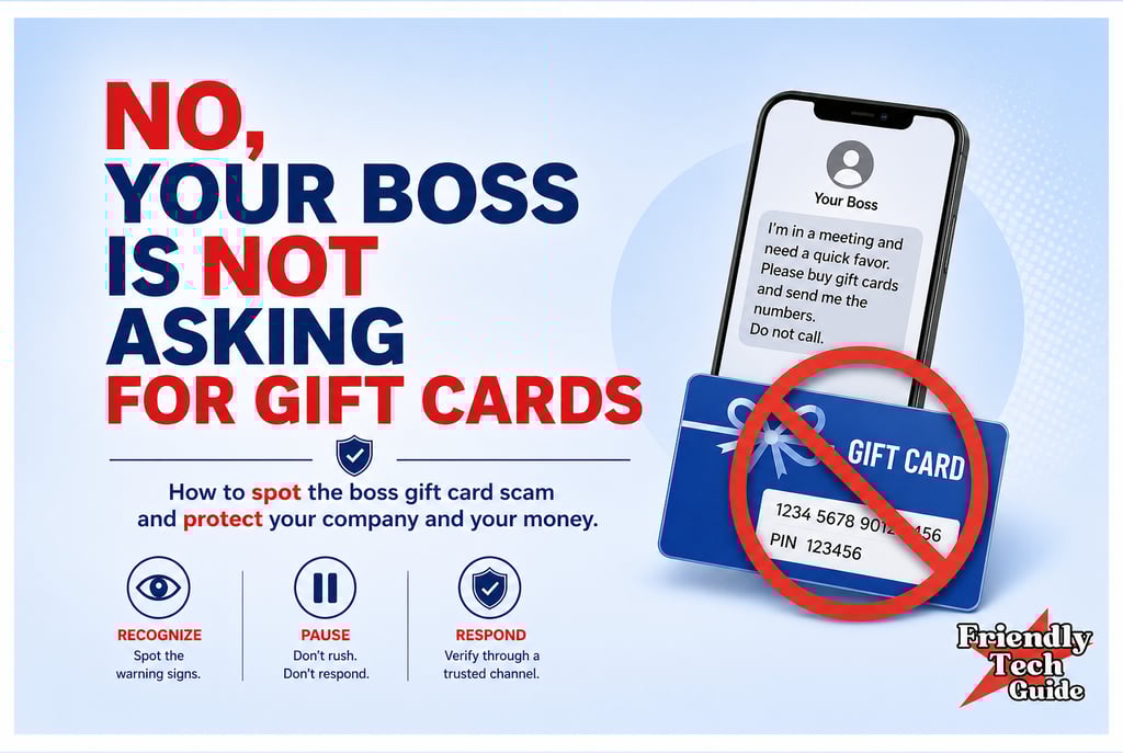 Friendly Tech Guide provides general education and support. We are not a law firm, bank, or government agency. For legal or financial advice, contact a qualified professional. If you believe you are in immediate danger, call local law enforcement.