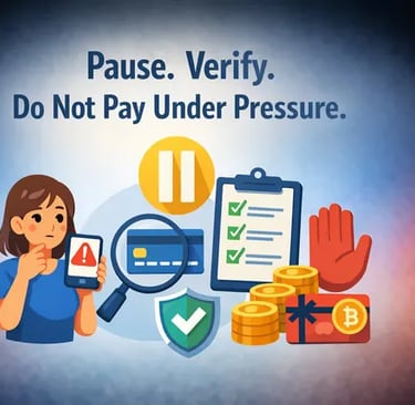 Pause. Verify. Do not pay under pressure: The core anti scam protocol